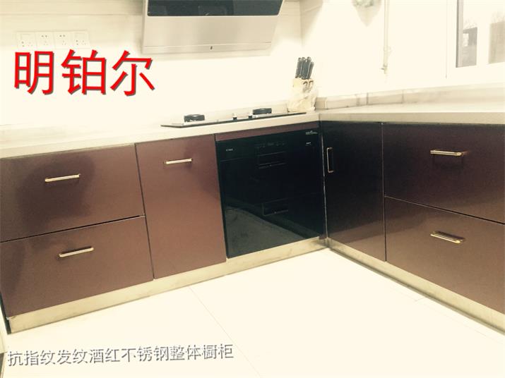 此套酒紅不銹鋼整體櫥柜,臺面板采用實厚2毫米304材質。可以使用100年的不銹鋼整體櫥柜。