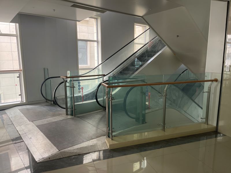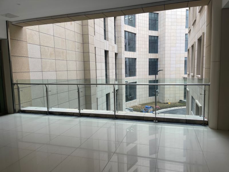 2.不銹鋼木紋欄桿+鋼化玻璃