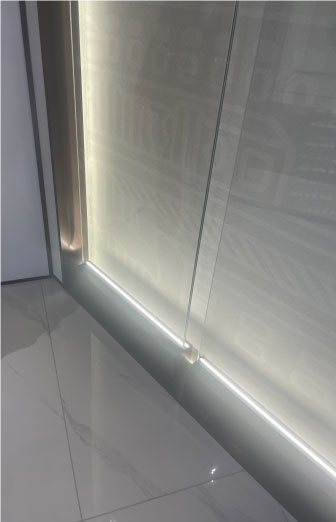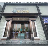 大門整體使用不銹鋼材質,八個不銹鋼字耐磨耐曬耐腐蝕,地拉彈簧門上放棄使用傳統拉手,改用定制云紋拉手,使得大門的質感更上一層樓。